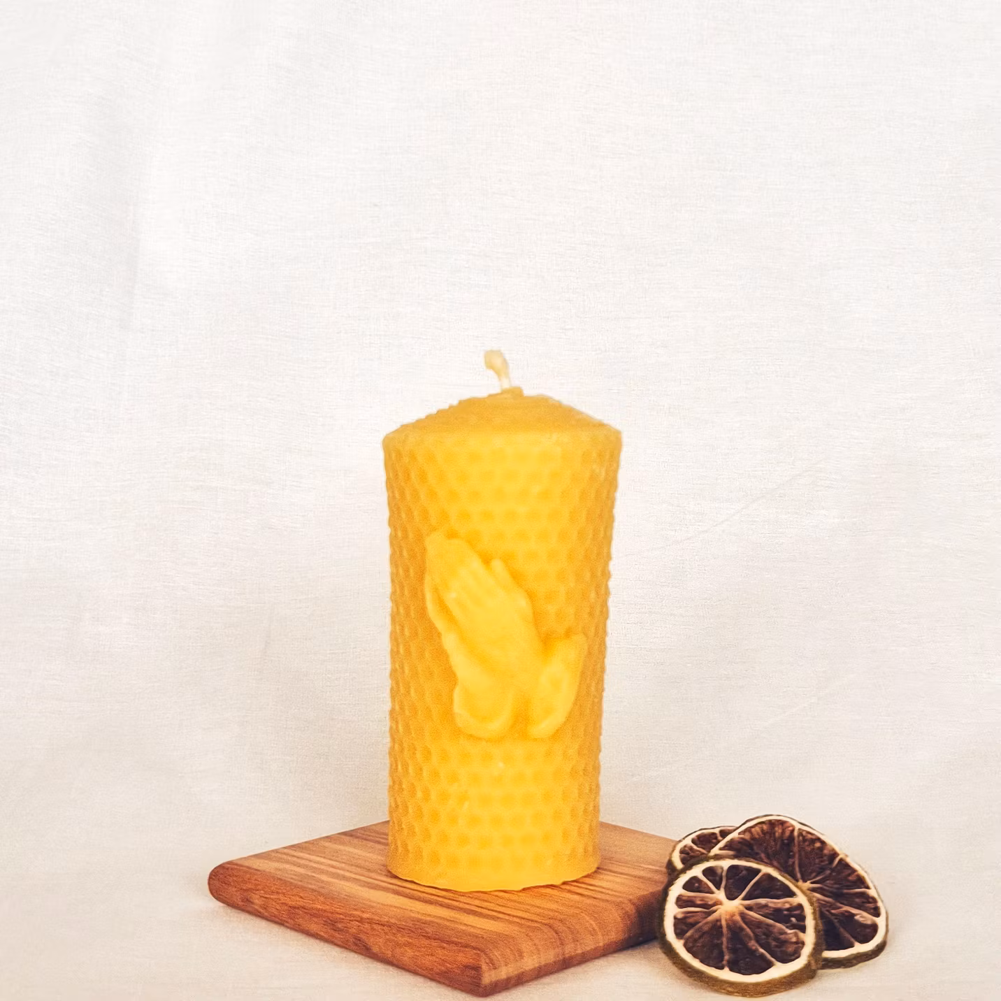 Vårt blockljus pryds av bedjande händer – en symbol för hopp och stillhet. Denna unika design gör ljuset till en perfekt inredningsdetalj som drar blickarna till sig och skapar en harmonisk atmosfär i ditt hem.