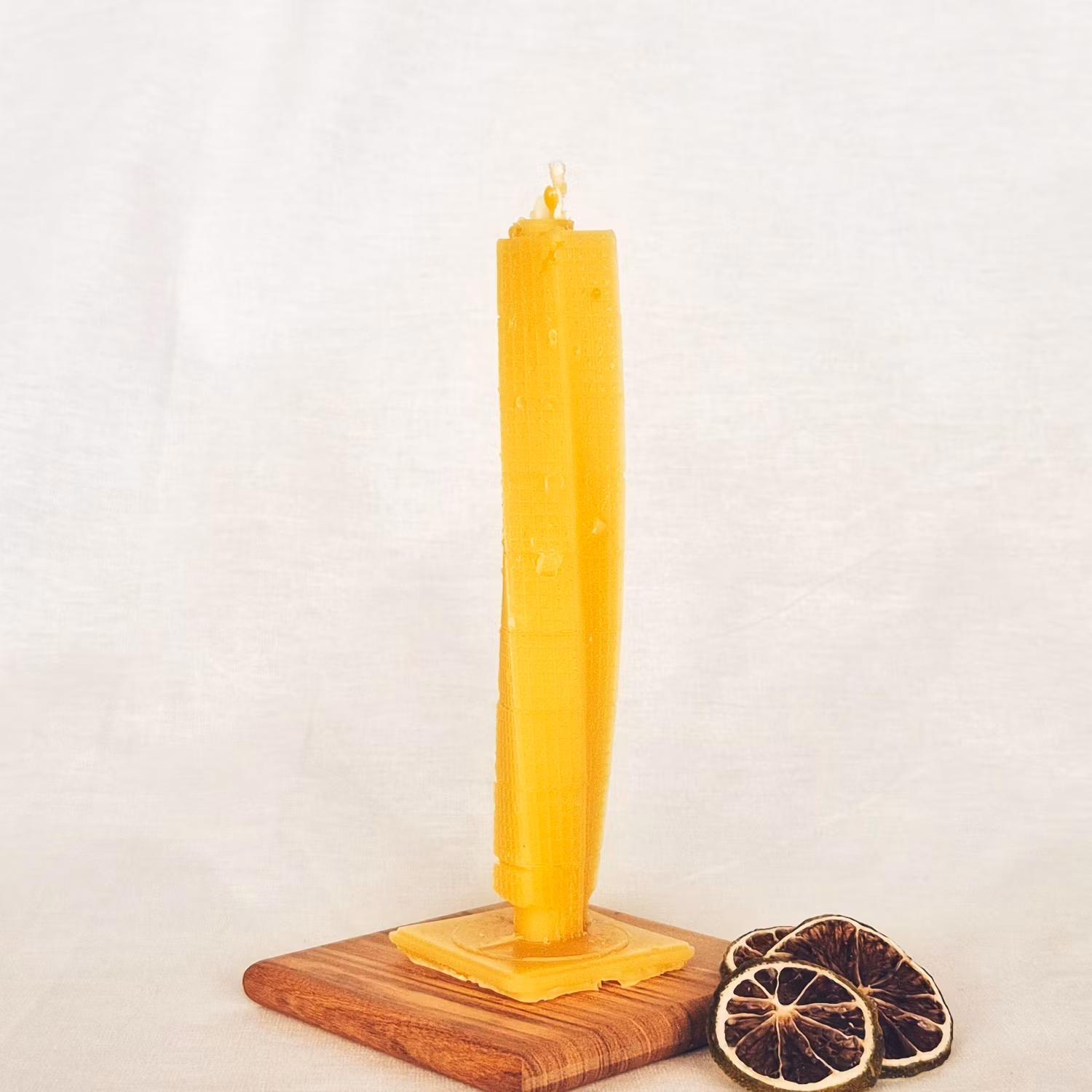 Ett gjutet bivaxljus av Sveriges och Nordens högsta skyskrapa i Malmö. Detta ljus har en hög detaljrikedom från byggnadens entré till fönster. Ljuset snurrar sig i samma stil som det skyskrapan i Malmö. Detta ljus är iögonfallande och pryder hemmets alla hörn med ett ståtligt och vackert utseende. Njut av att ha Malmös stolthet i ert egna hem.